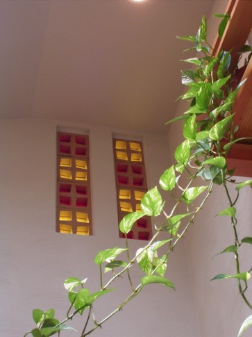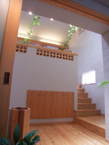 その為、空間の遮へい性を避けるため、事務所と住宅をスキップフロアーで用途の分離をしながらも、空間のつながりを確保しました。