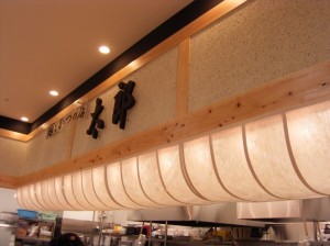 カウンター上部の照明カバーは、ひとつひとつ手作りで制作。
