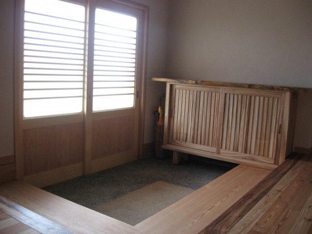 玄関からリビングの戸襖を開け放つ夏と、戸襖を閉めている冬とでは開放感や奥行きが違って見える。