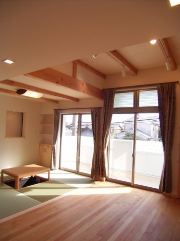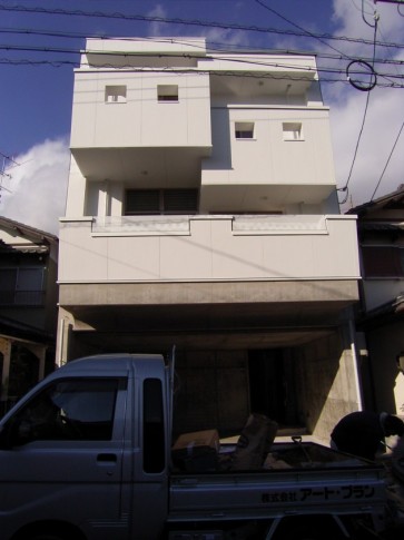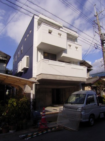 竣工年月 2008年(H20 年)2月 建築場所 京都府京田辺市 主要用途 一戸建て住宅 構造・規模 1階RC(一部)+木造の混構造 地上3階建て 敷地面積 94.71㎡ 建築面積 56.74㎡ 延床面積 164.84㎡ 家族構成 夫婦+子供2人